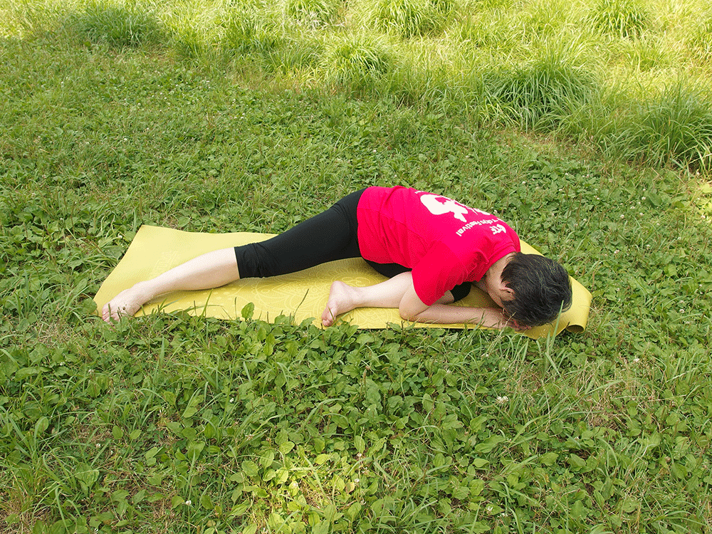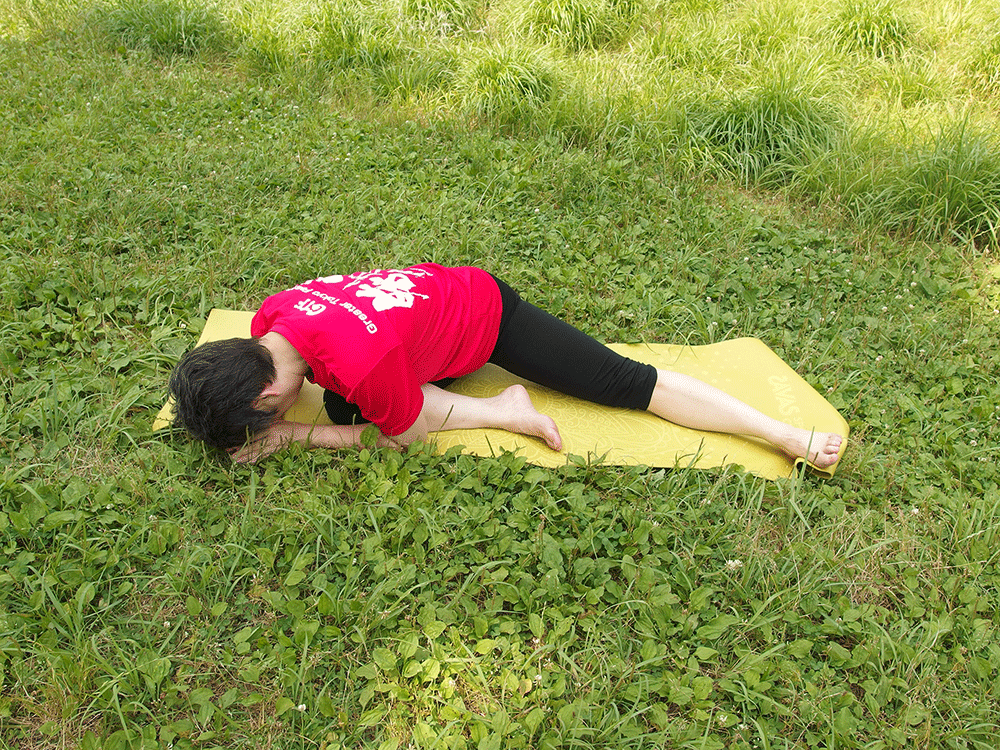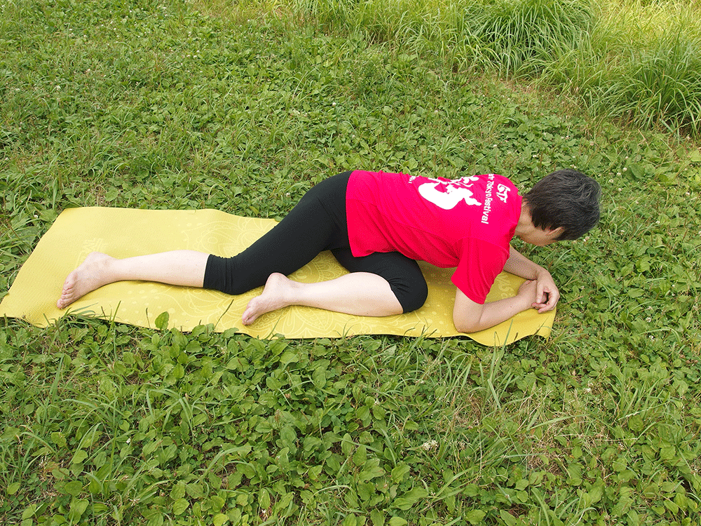 ヒザが曲がらないときは伸ばしたままでも大丈夫です。