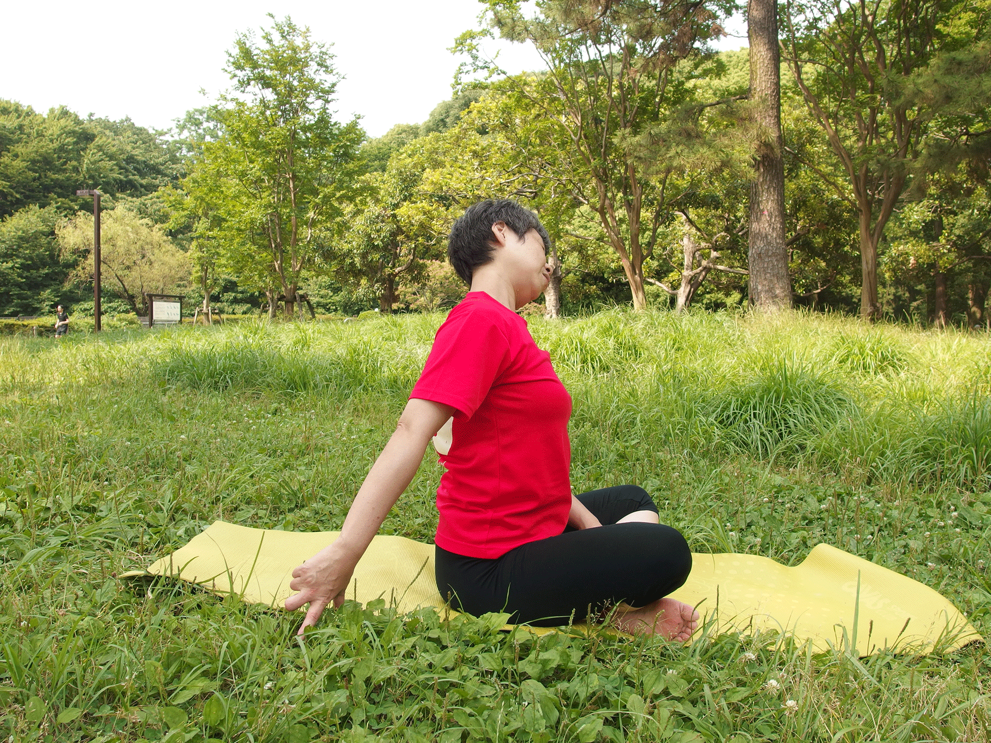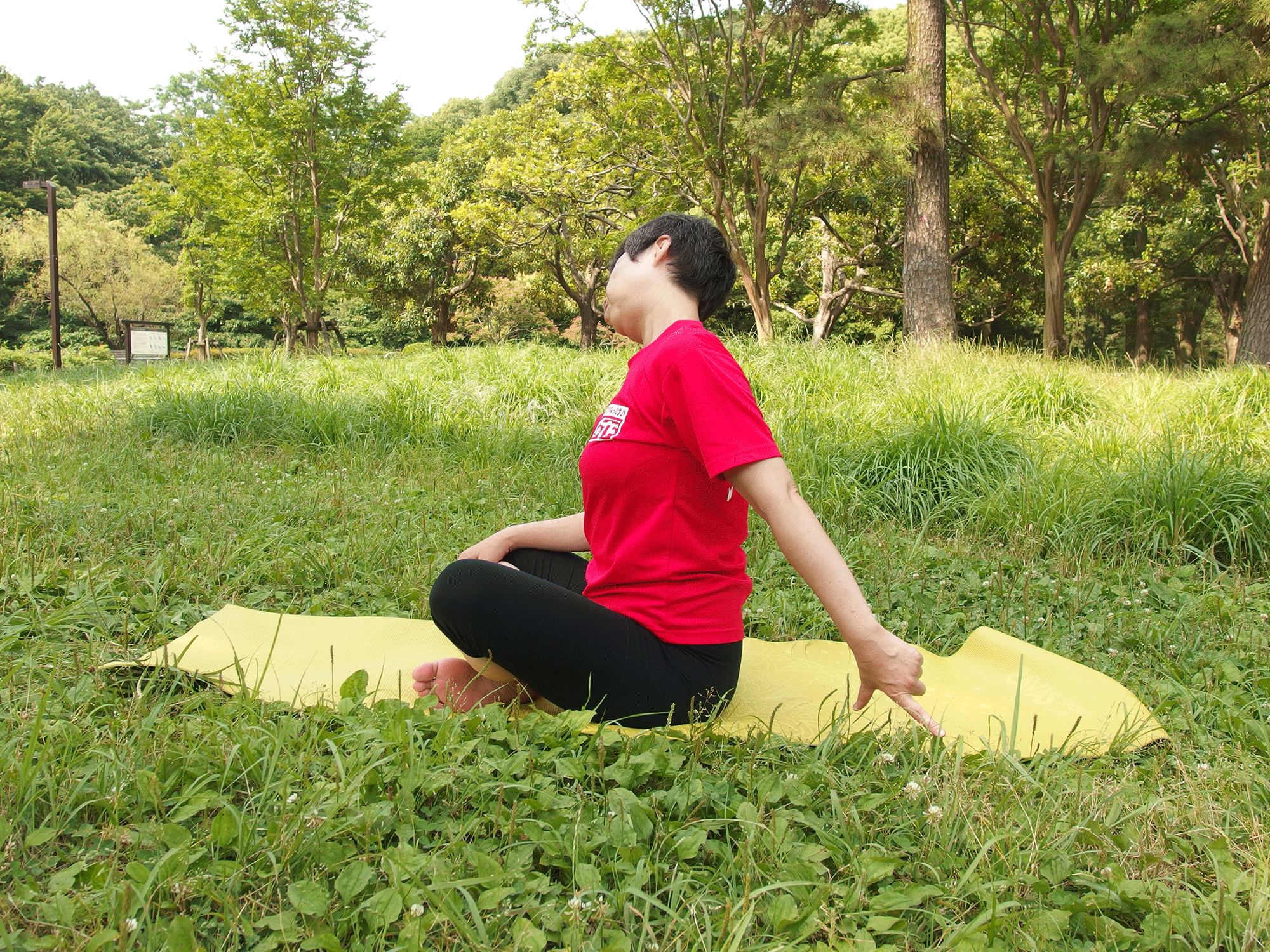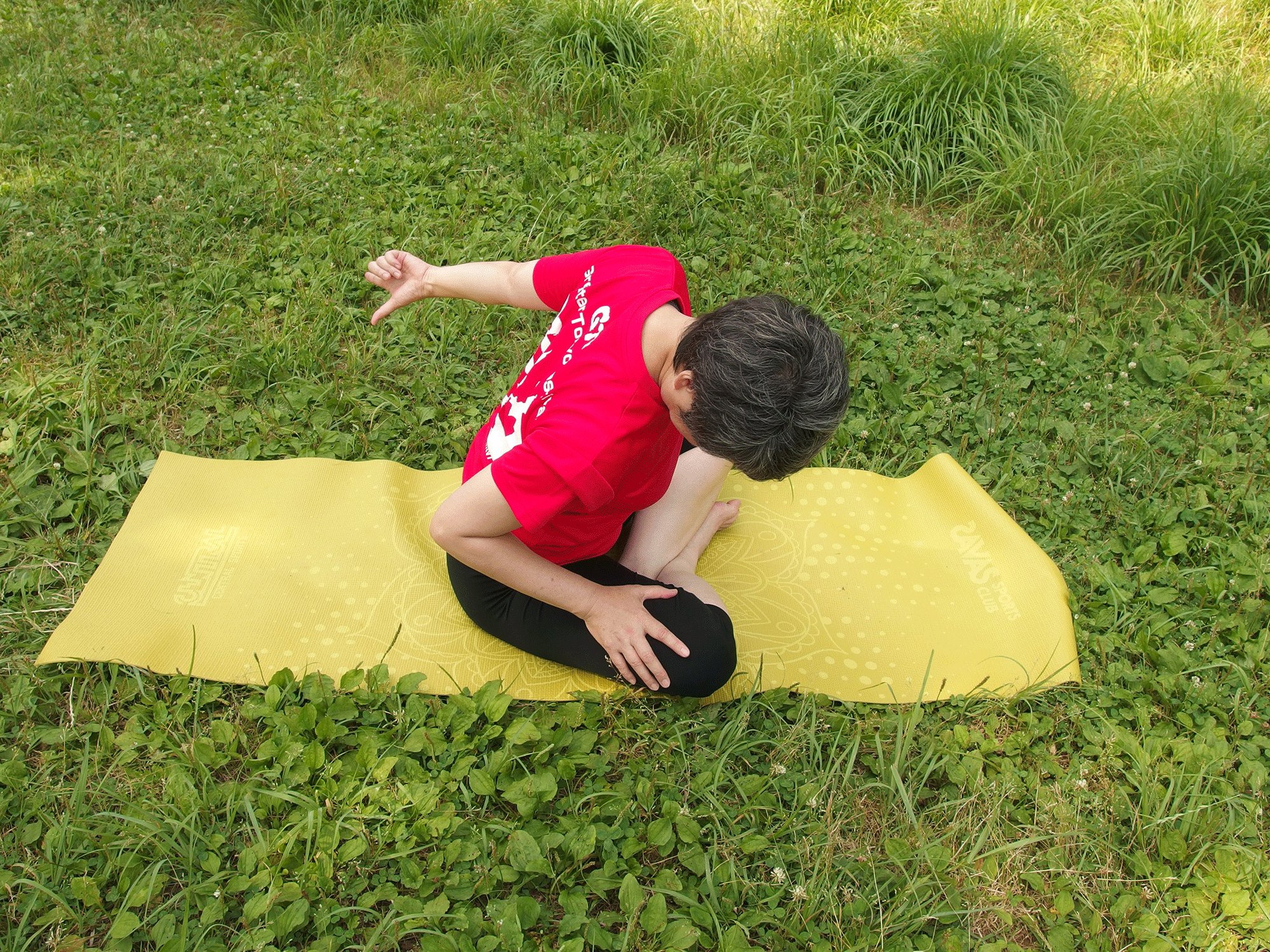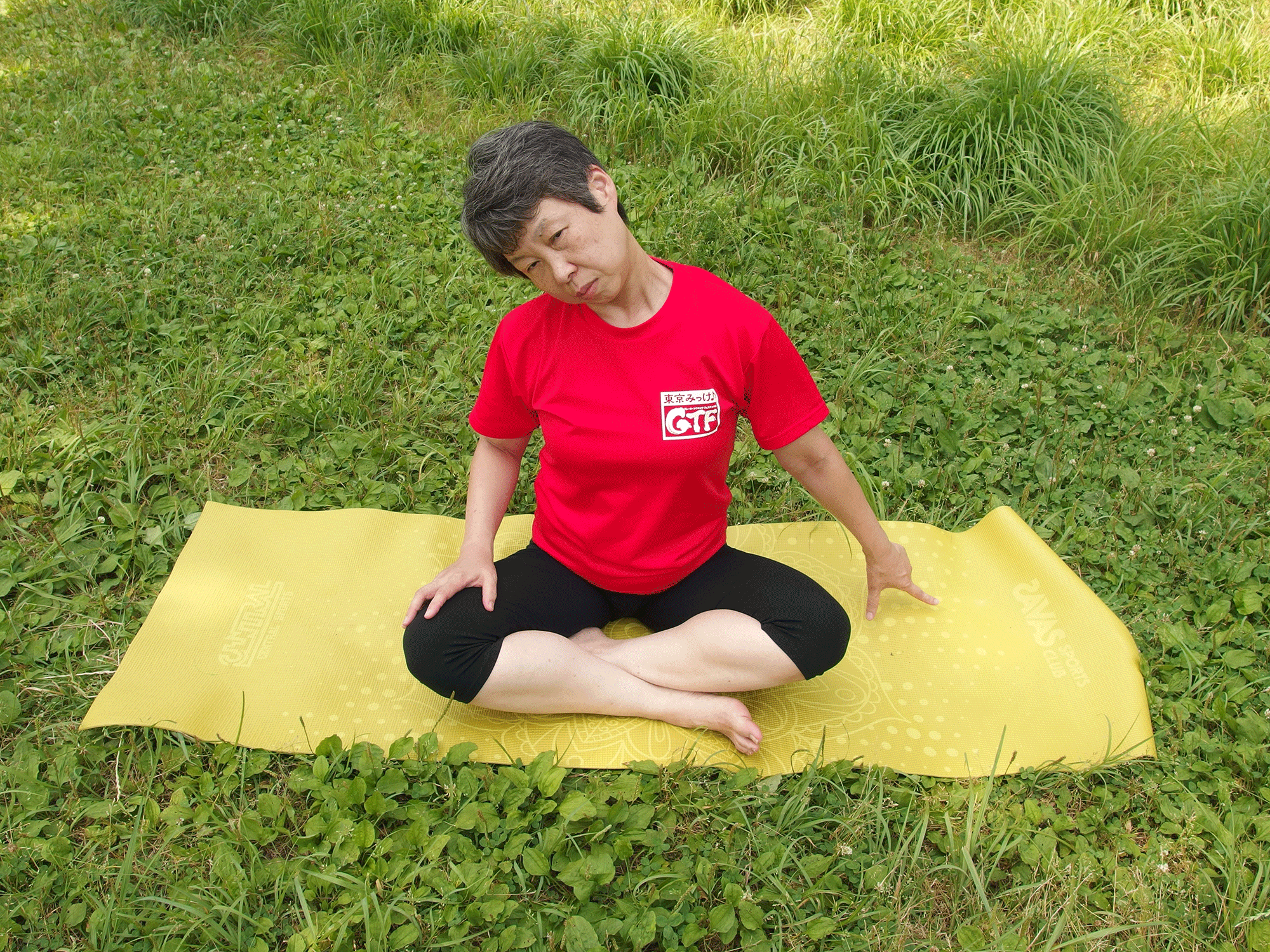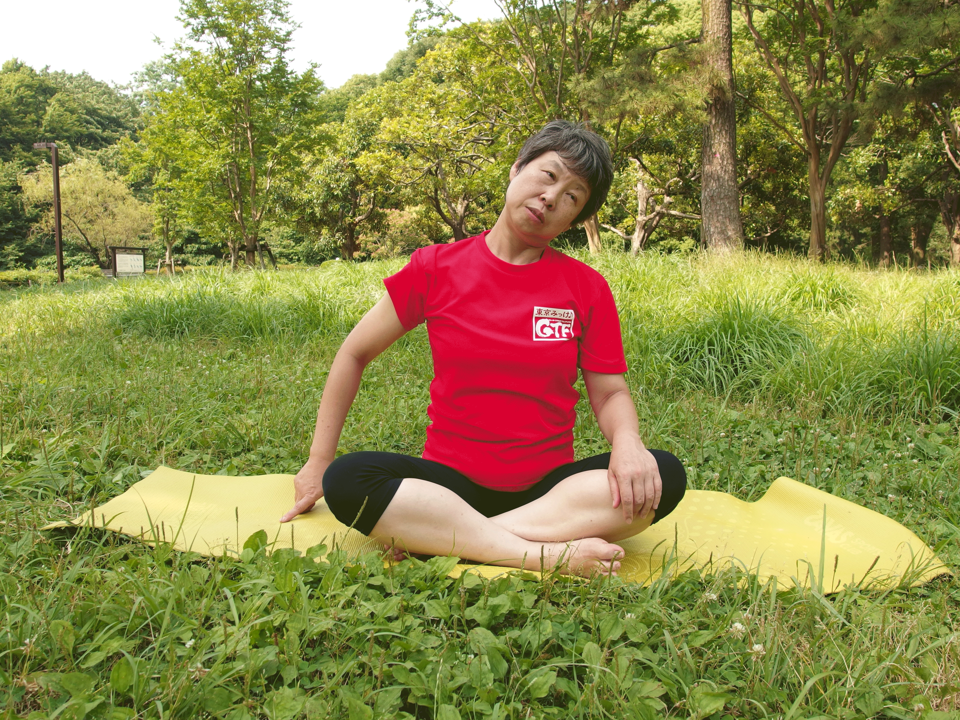肩が水平になっていれば首だけでもOK。痛めやすい部分なので無理して伸ばさないようにしましょう。