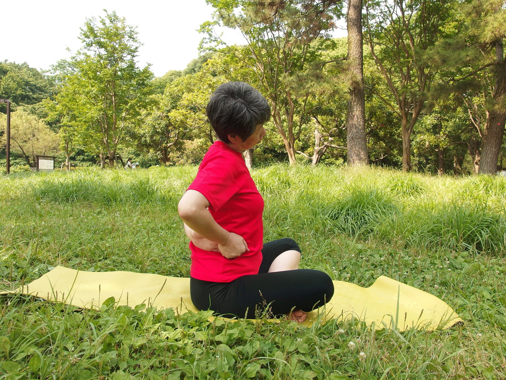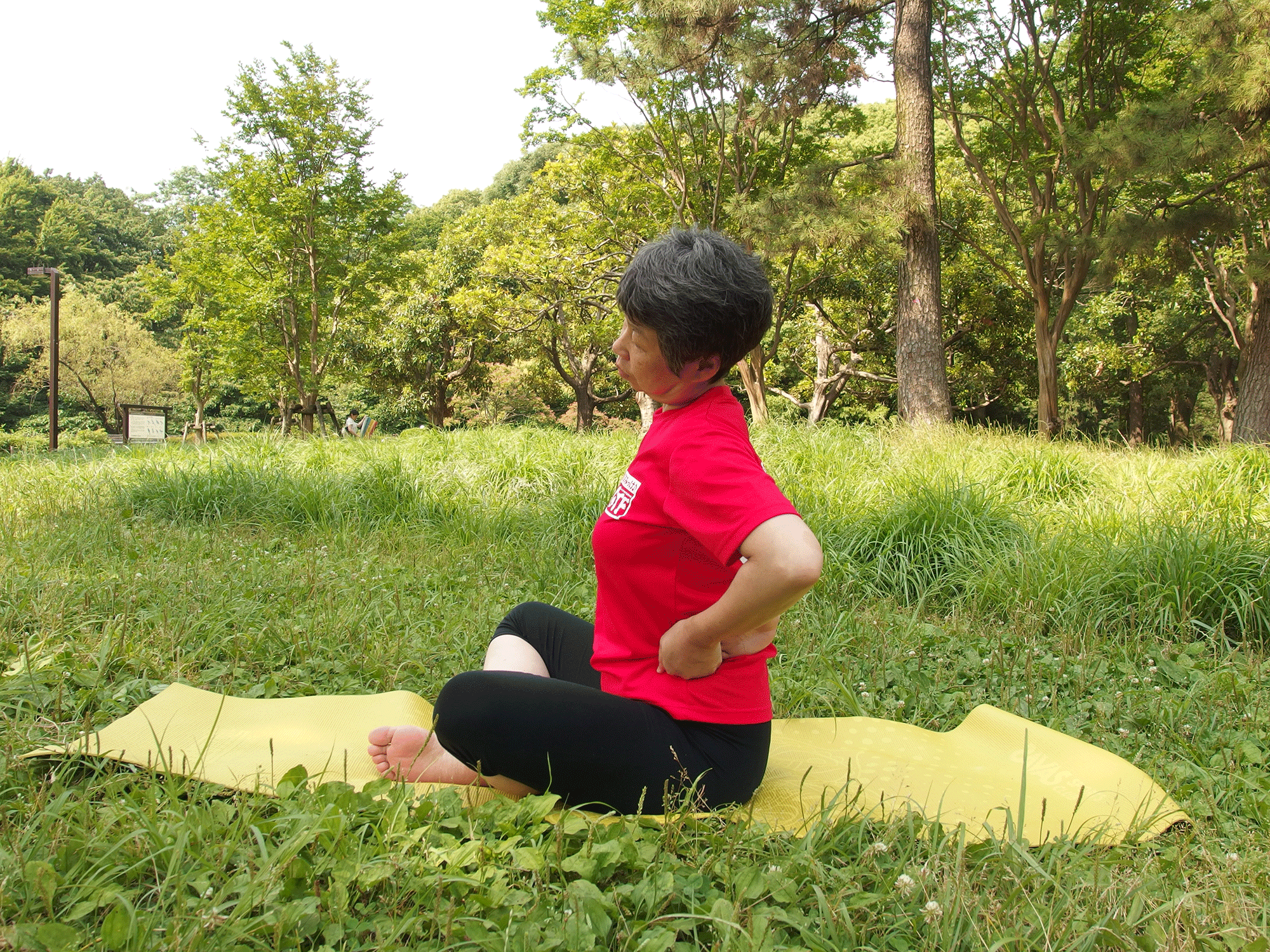 肩が水平になっていれば首だけでもOK。痛めやすい部分なので無理して伸ばさないように