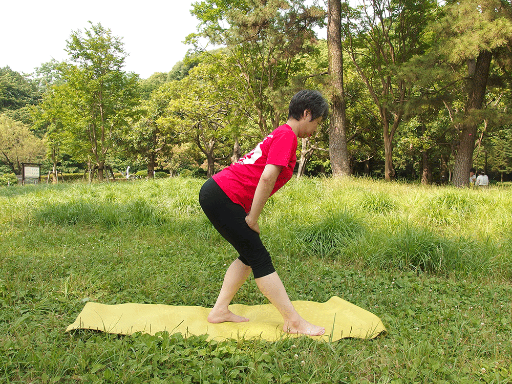 背中が丸まっている、目線が下がりすぎていると伸びが悪くなります。