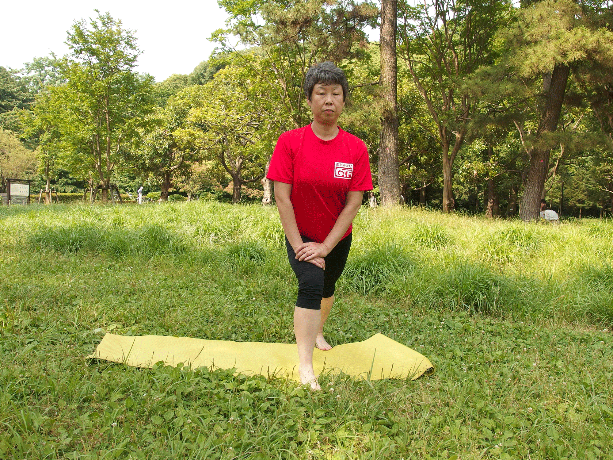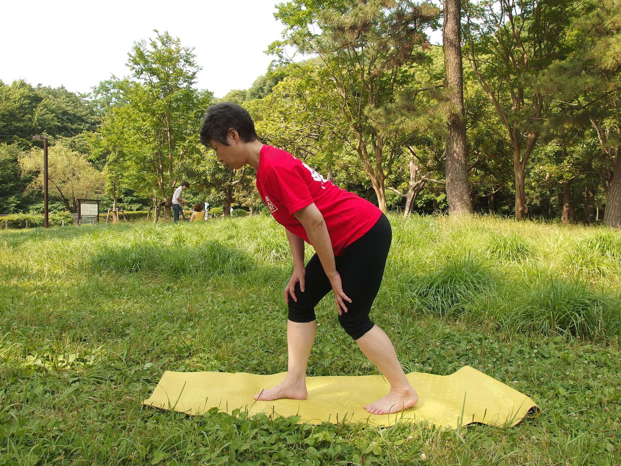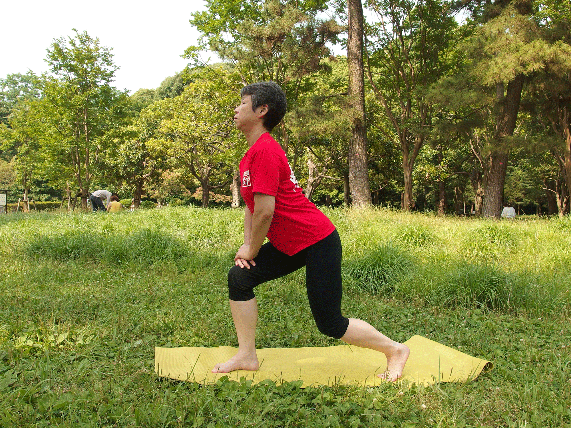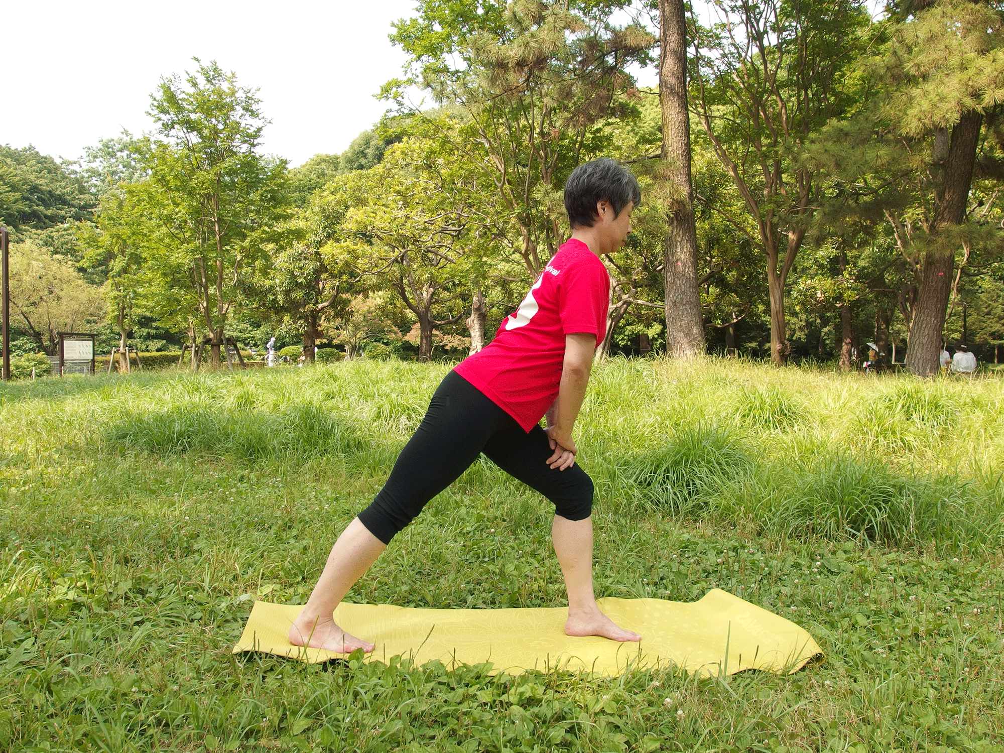 ヒザが痛いときは壁に手をつくなど身体を支えて行います。また歩幅を小さくして身体を起こせば負荷が小さくなります。